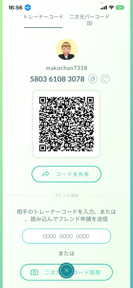 Trainer name is makochan7358 Trainer code is 580361083078 Trainer level 77 Please send a gift first.
