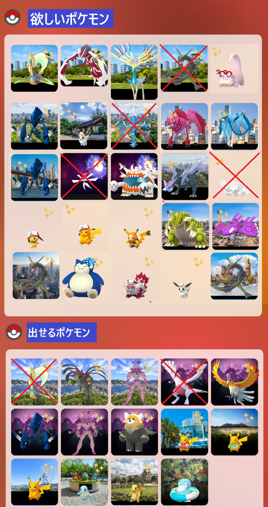 | 欲しいポケモン | 色違いキョダイマックスポケモン、色違い伝説 |