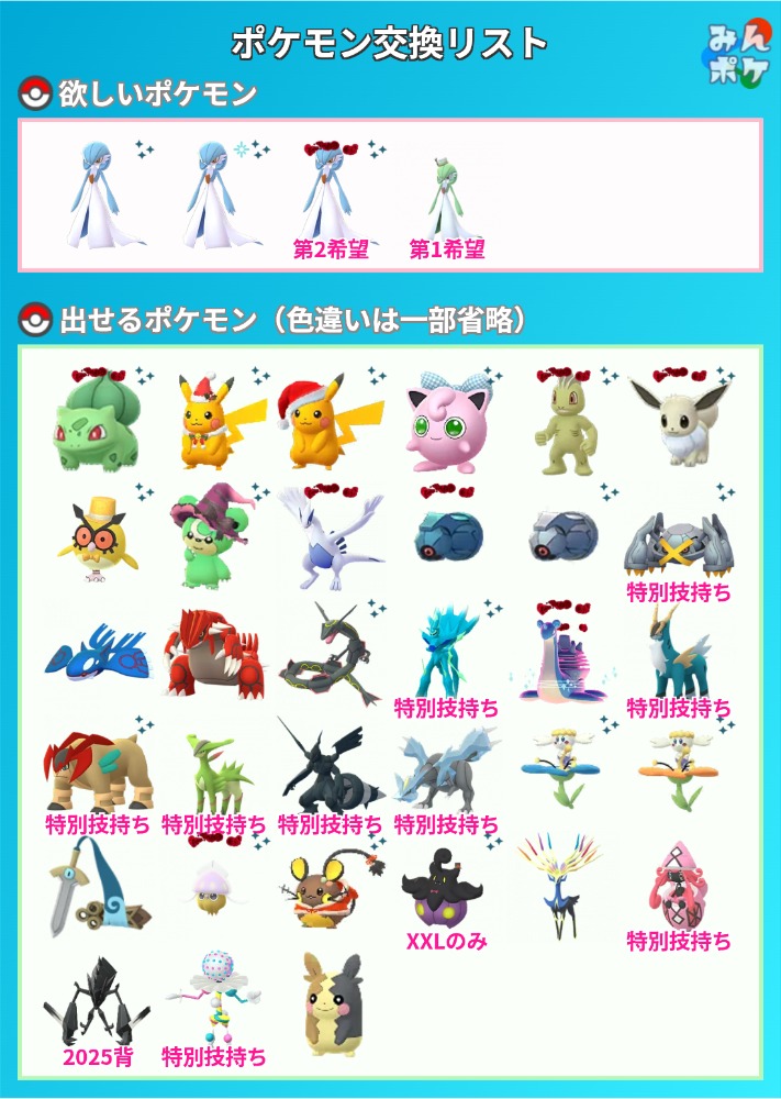 出せるポケモンこちらになります!ぜひ交換よろしくお願いいたします🙇♂️!