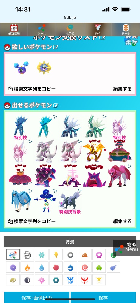 | 欲しいポケモン | 画像+BWポケの色背景 |