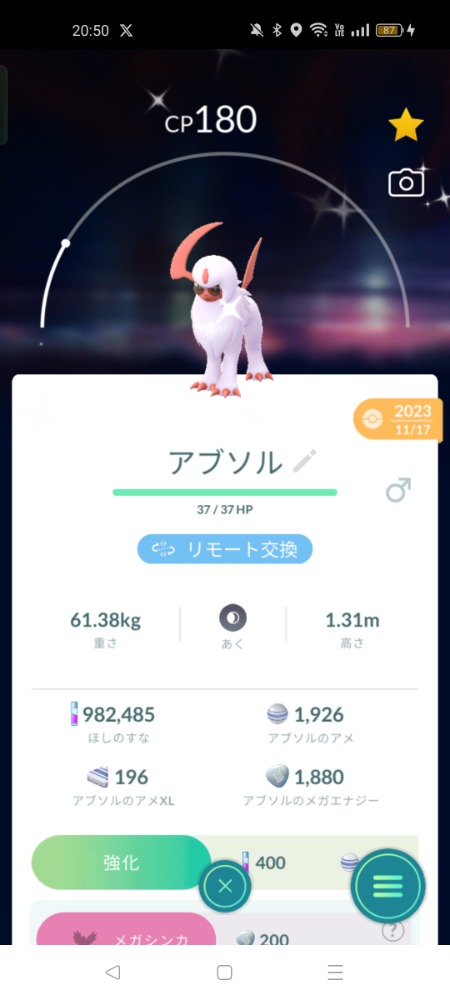 | 欲しいポケモン | 色アブソル(サングラス) |