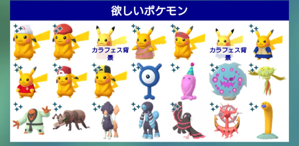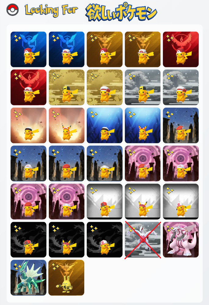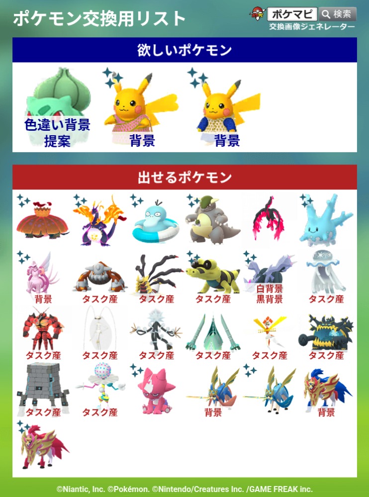 | コメント | 提案お待ちしてます 特殊なポケモン優遇します (ロケーション>コスチューム>SP背景) ロケーション背景は色違い以外でも可! |