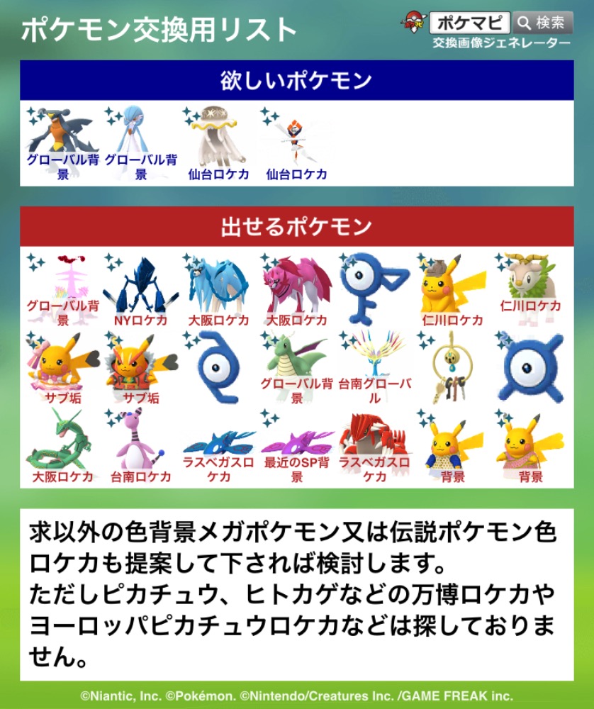 | 交換希望場所 | ポケモンセンターメガトウキョウ |