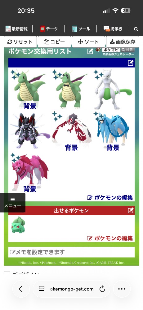 | コメント | 色違いロケカにはこちらから2匹以上出します。 色違いキョダイマックスも一部出せます。背景ありませんが。万博背景も出せます |