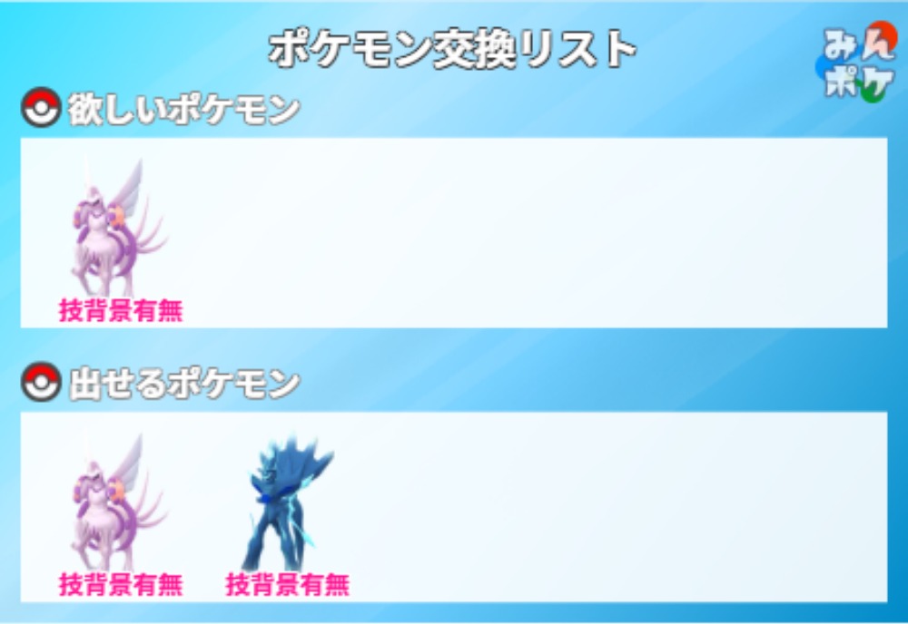 | 出せるポケモン | 欲しいポケモン教えてください 複数体でもOK |
