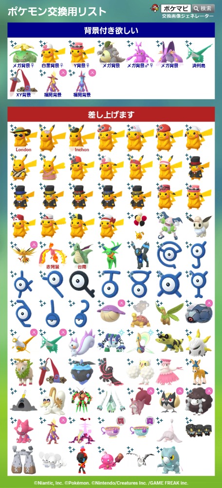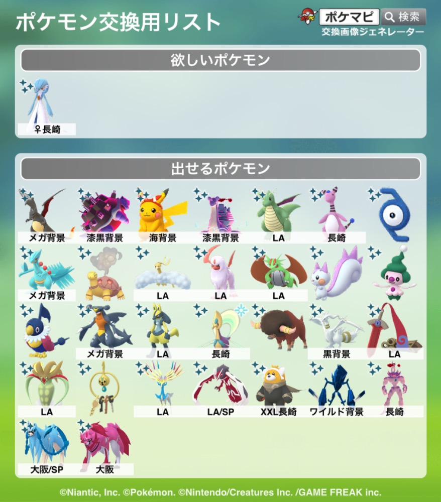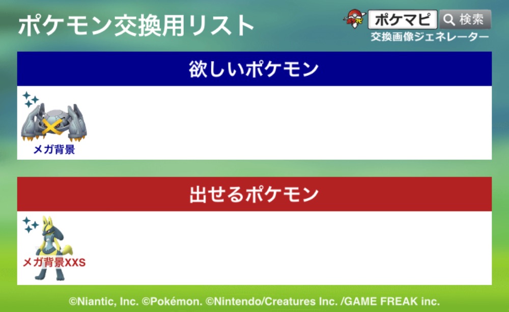 | コメント | メガシンカ背景のポケモンはキラトレード希望です。 |