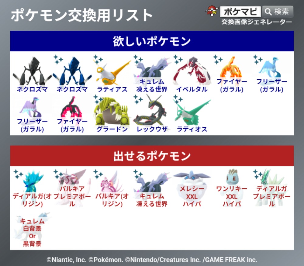 | 欲しいポケモン | 背景色違い限定わざパルキア 背景色違い限定わざキュレム |
