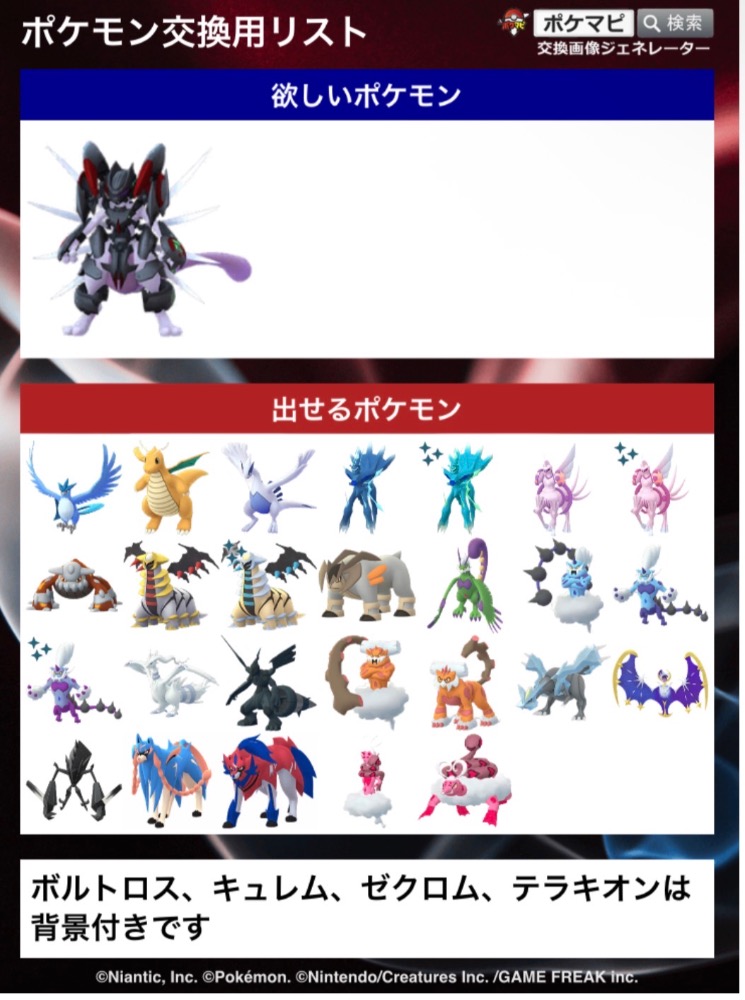 | 出せるポケモン | 画像または相談 |