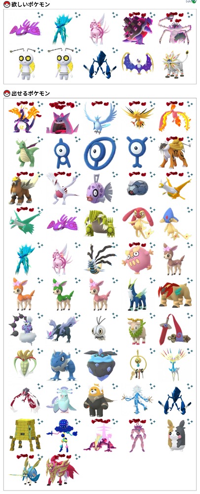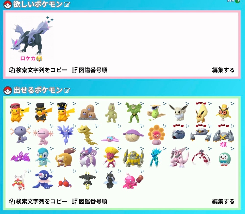 | 欲しいポケモン | 大阪色レックウザ マドリード色UB ラスベガス色グラカイ など |