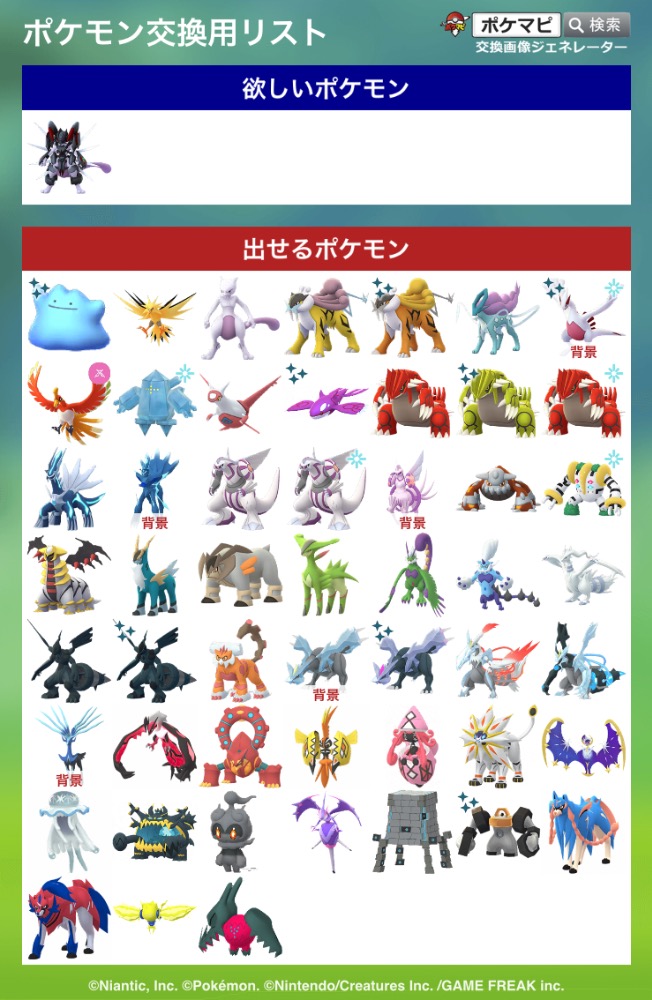| 出せるポケモン | ロンドン色レックウザ 台湾色キュレム 仙台色ネクロズマ |