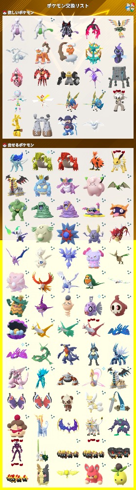 | コメント | ①イッシュの色違い伝説ポケモンの三銃士、 色違いツツケラのスペシャル背景などを入手しました! ご希望の方はいらっしゃいますか? ②色ナゲキや色ヒスイドレディア・色アサナンが入手できなかったため、お譲りできる方がいましたら嬉しいです。 |