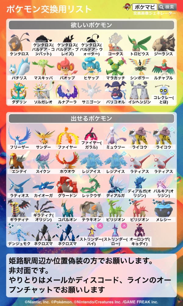 | 交換希望場所 | 北海道札幌市or位置偽◯ |