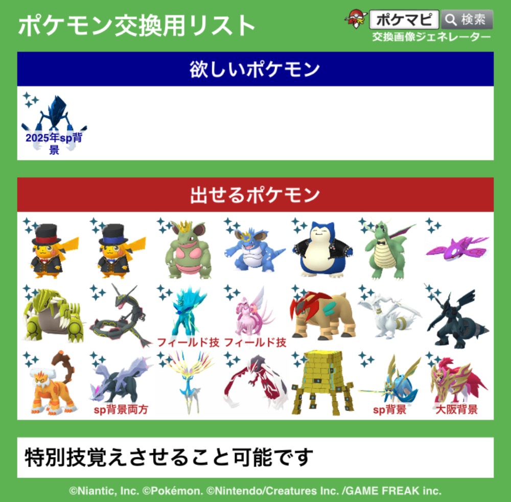 | 出せるポケモン | 写真のポケモン➕2020年より前に捕まえたポケモン |