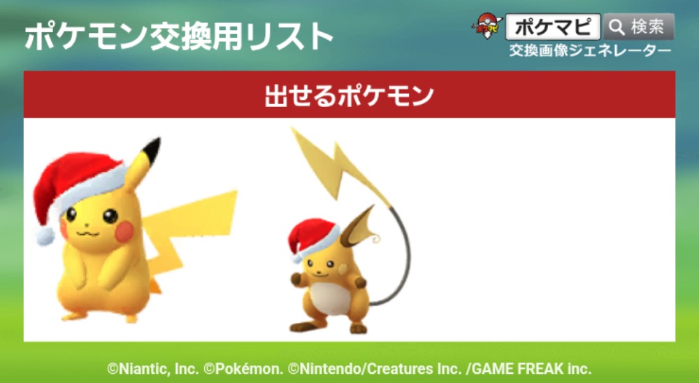 | 出せるポケモン | サンタ帽子ピカチュウライチュウ |