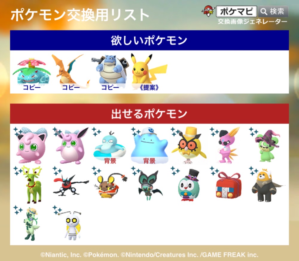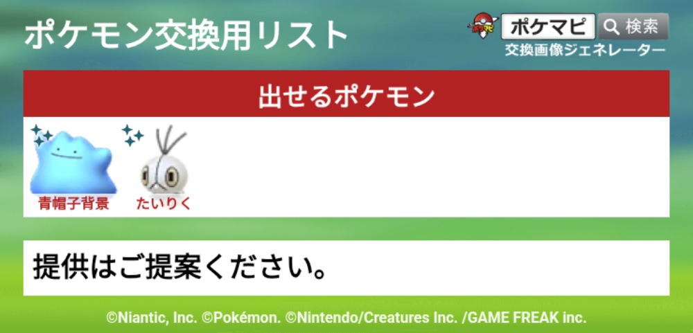| 欲しいポケモン | ご提示ください |
