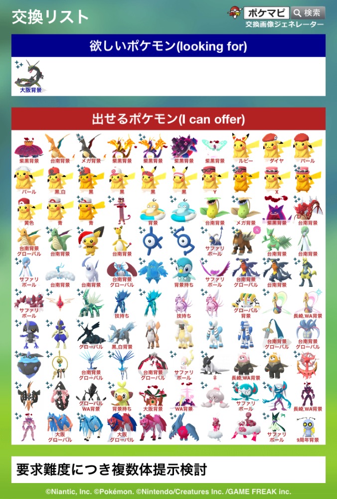 またどの程度のポケモンと交換可能ですか?