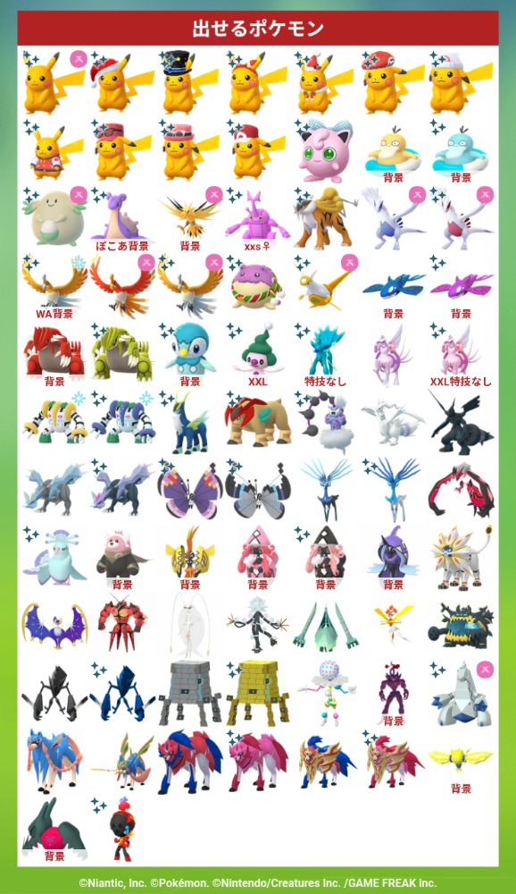 リストの出せるポケモンの中で背景付き色違いは何かありますか?