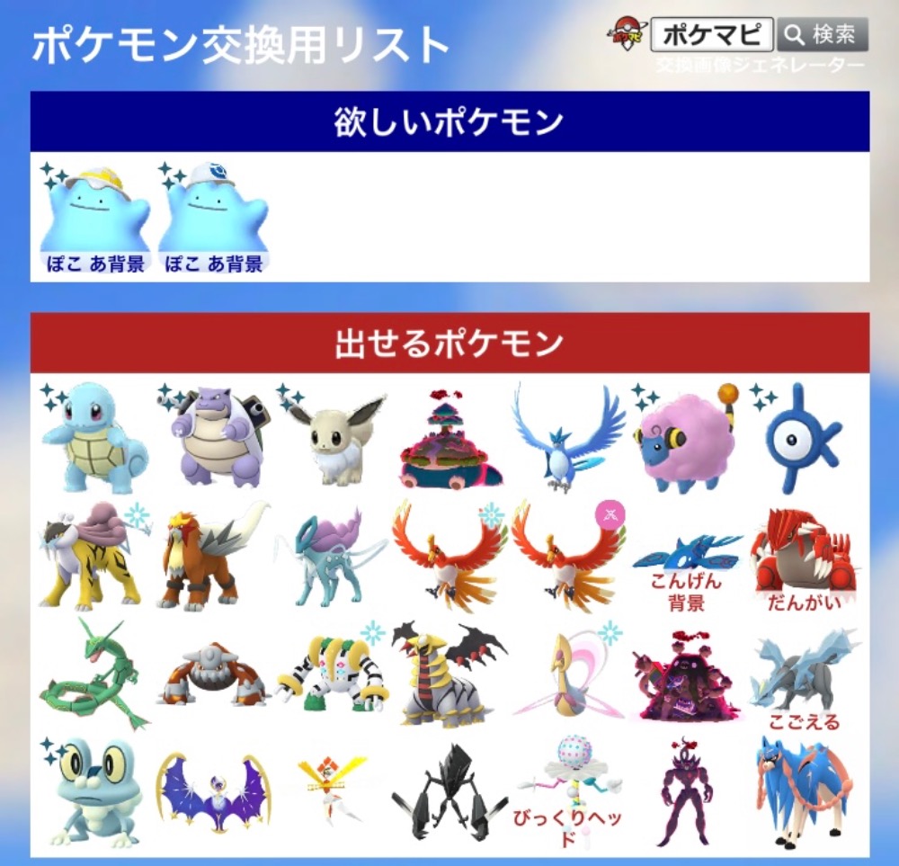 | 出せるポケモン | もし背景色ポコあメタ出すとしたら何と交換できますか? 参考までにお願いします |