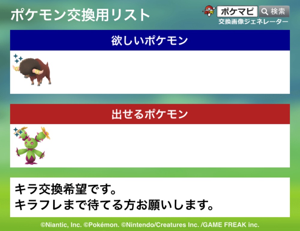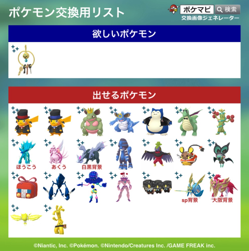| 出せるポケモン | 画像+来月きたらキラチャーム |