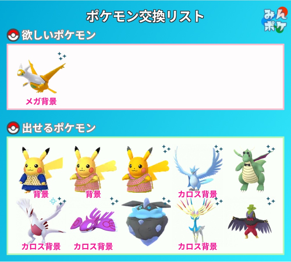 | 欲しいポケモン | メガ背景色違いラティアス |