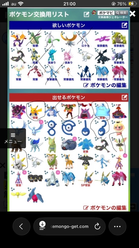 | 欲しいポケモン | 画像(画像外相談) |