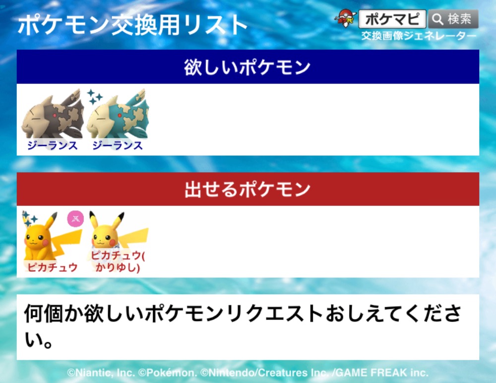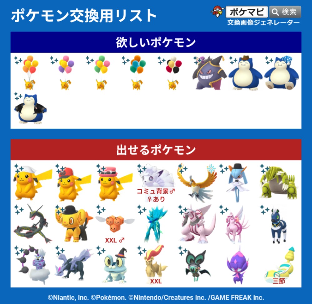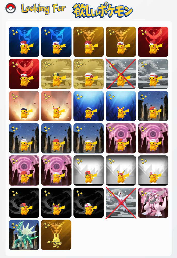 | 欲しいポケモン | 色違い黄緑風船ピカチュウ、色違いオレンジ色風船ピカチュウ、色違いメラメラオドリドリ |