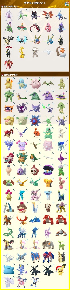 | コメント | TLタスクの300km以上のポケモン10回交換をクリアしたいため、大阪より西側で捕まえたポケモンが欲しいです |