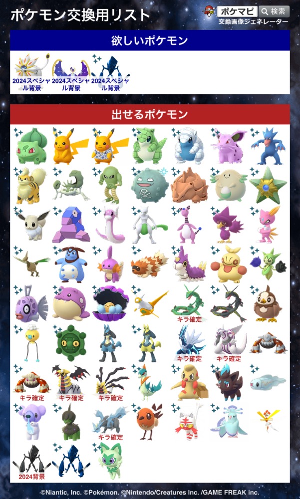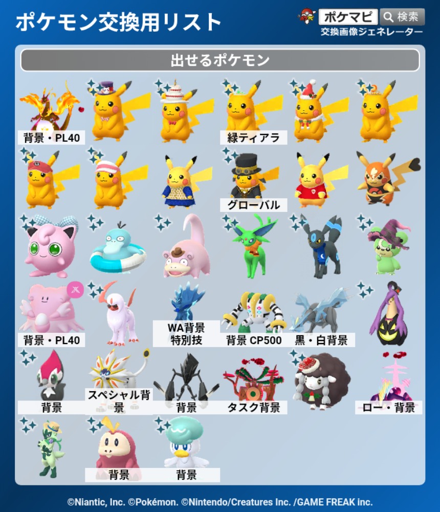 | 出せるポケモン | 画像を参照 |