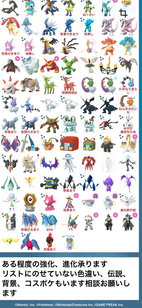 アクジキング色違い・背景無し、レックウザ色違い背景無し・特別技無し、ネクロズマ仙台背景・通常色、出せます。