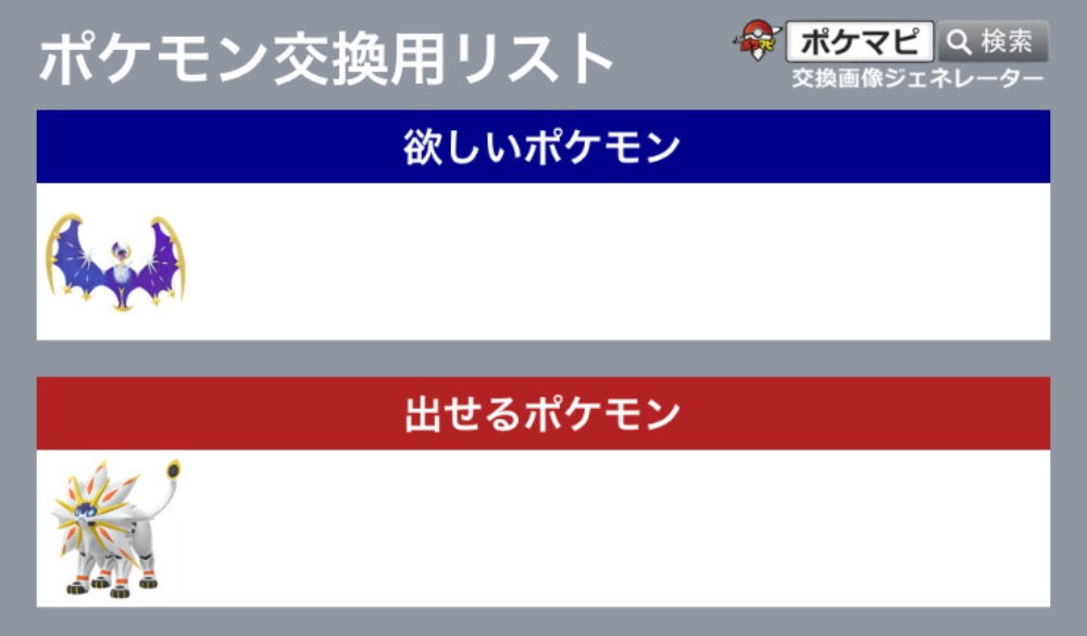 | コメント | ポケモン(求):画像参照 ポケモン(出):画像参照 交換希望場所:埼玉 東京 千葉 交換希望日:親友 詳細なやり取り(TwitterIDなど): 宜しくお願い致しますm(_ _)m |