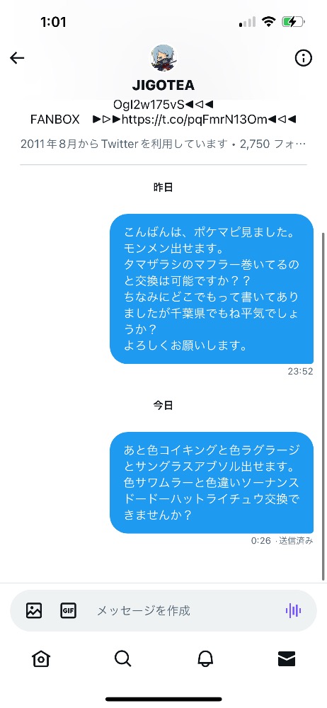 仲良しの状態で、1/7(土)コミュデイの日に交換しませんか?