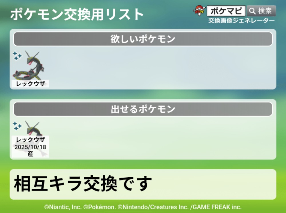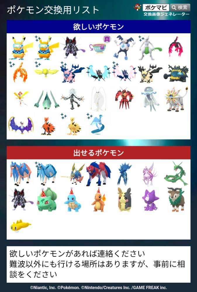 当方の色違いミュウツーと色違いキョダイマックスリザードンの交換は可能でしょうか?親友後秋葉原駅での交換可能です。