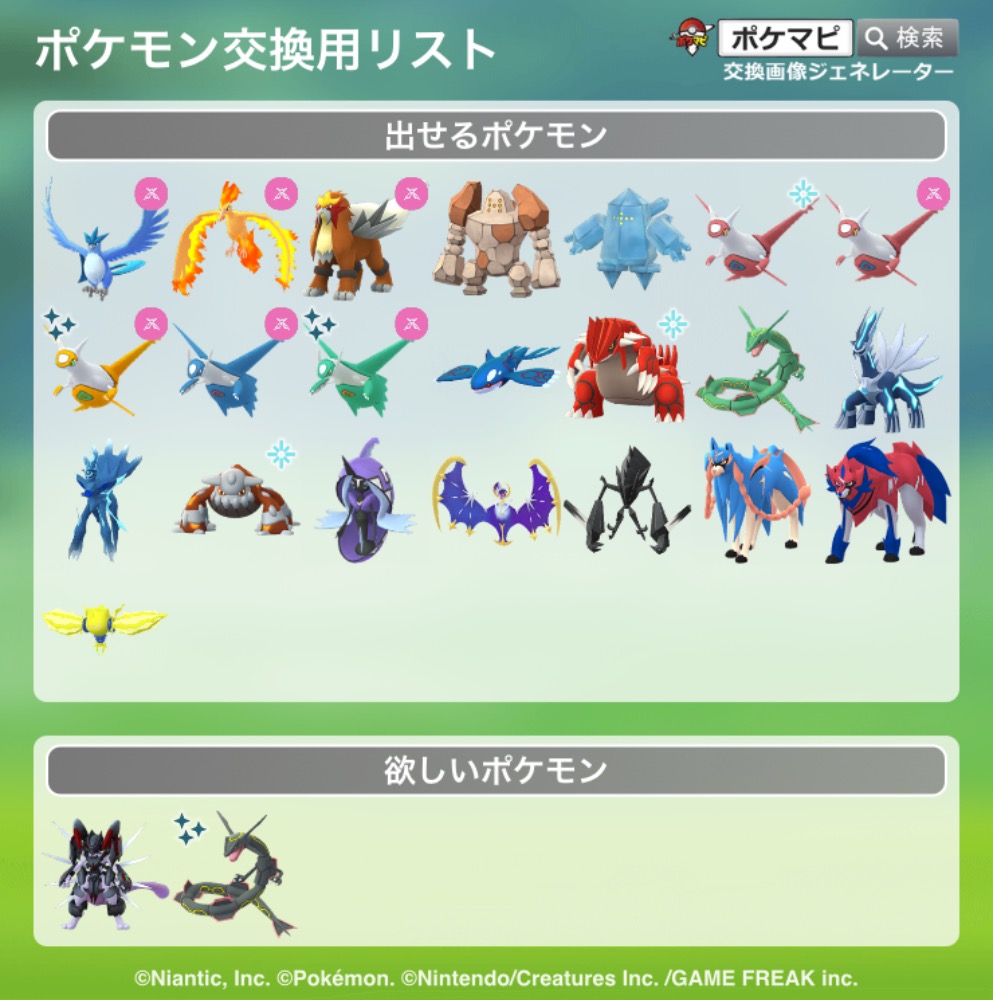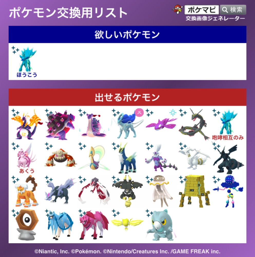 | 欲しいポケモン | 余ってる伝説ポケモンいたら交換してくれませんか? |
