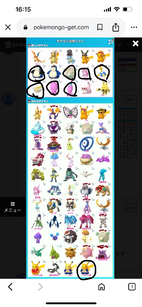 とりあえず持っているポケモンに丸をつけさせていただきました。