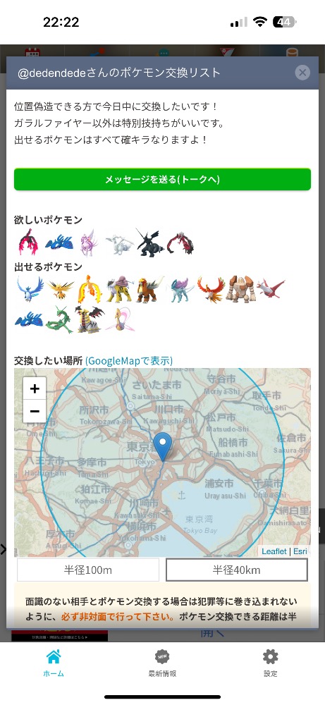 | 交換希望場所 | 都内(多摩地域だとありがたいです) |