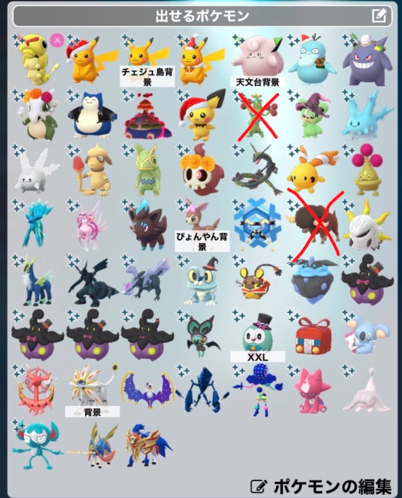 | 出せるポケモン | 色違いキュレム、色違いディアルガ、色違いレックウザ、色違いゼクロム、色違いネクロズマ、色違いザシアン、色違いレジギガスなど。 |