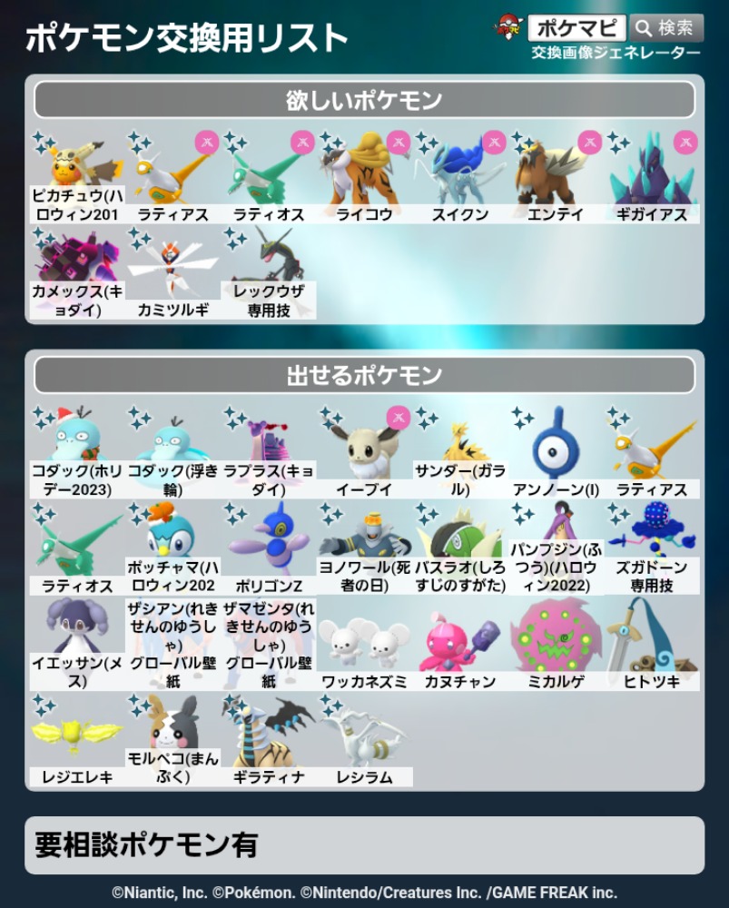 | コメント | NEW/韓国背景ピカチュウ 非対面 フレンドレベル親友以上 キラ交換希望(キラフレンドになってから交換希望or2020年以前のポケモンでの交換) 図鑑未登録OK 特別な交換(伝説、色違い)希望 画像とあわせて確認してください 1匹対2匹~3匹などの交換OK 連絡手段/X 条件をしっかりお読みください |