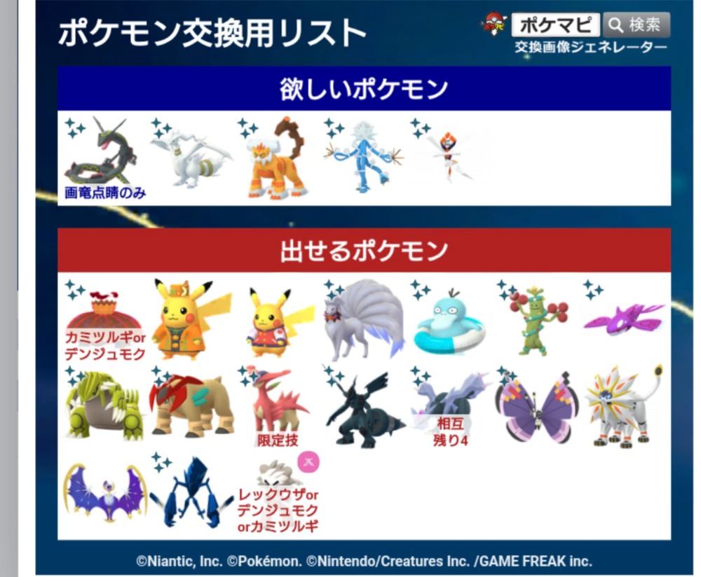 | 欲しいポケモン | 画像参照 |