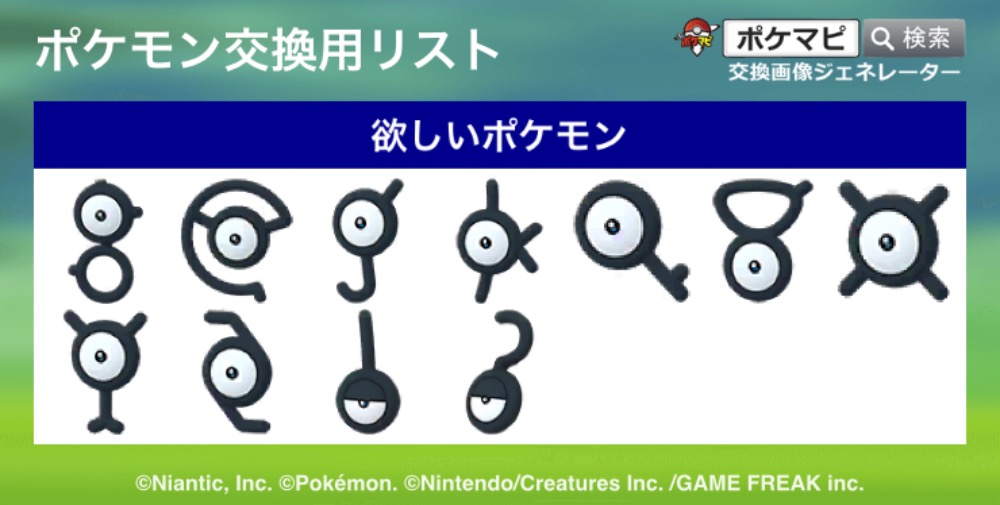 | コメント | 画像のアンノーン欲しいです! レート分からないので提案お願いします! 色コス・キラ交換とかは厳しいです… |