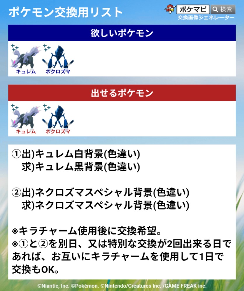 そうであれば、黒背景色違いキュレムと交換希望です