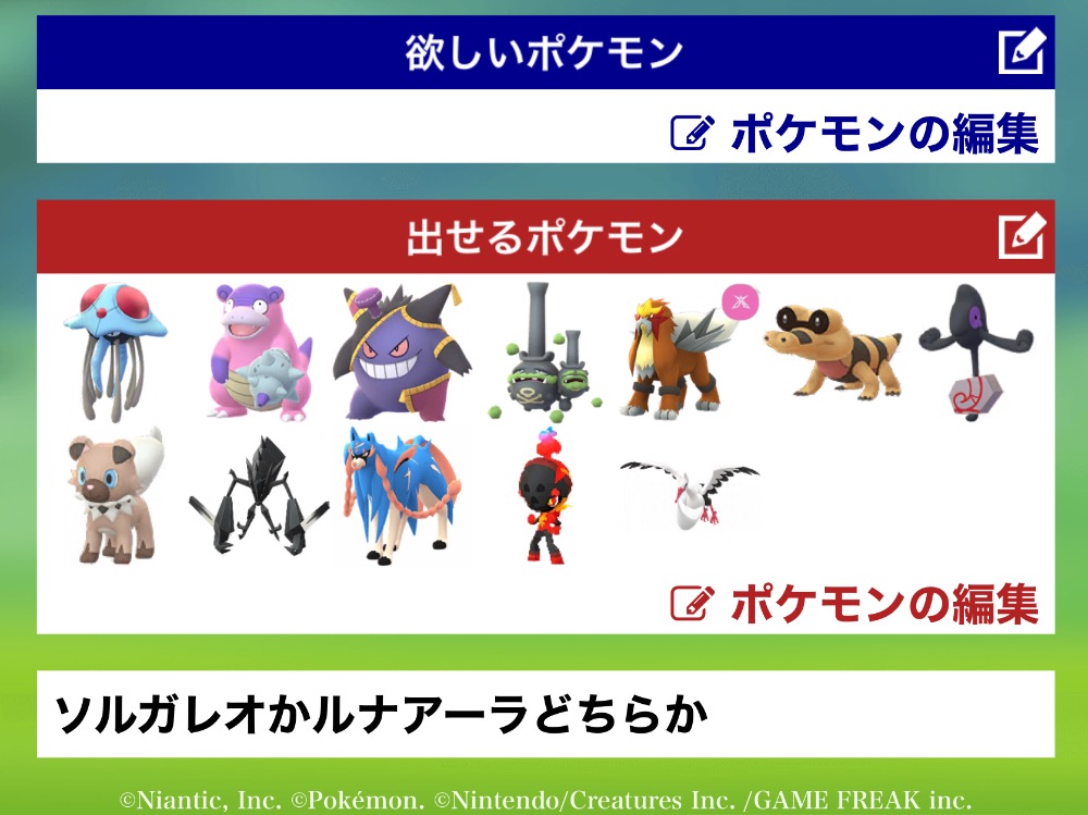 | 欲しいポケモン | ルナアーラ |