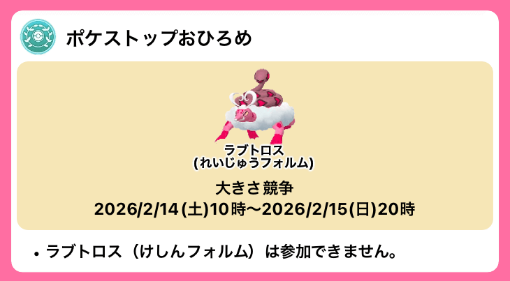 - 2026/2/28(土)、2026/3/1(日) 各日10時~18時までは「GO Tour:カロス地方 – グローバル」が開催されます。